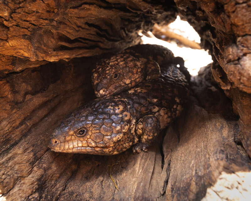 Shingleback’s tails store fat, allowing them to survive for months without food after a good season. They have armour-like scales to help protect them from predators and harsh conditions, making them one of Australia’s hardiest lizards. They can live up to 50 years.