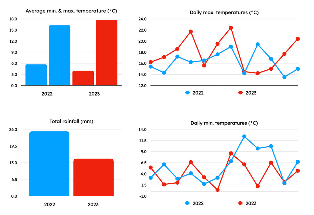 Rainfall this year revealed a remarkable departure from the usual pattern. Despite having more rainy days than last year, 2023 experienced a surprising 42 percent reduction in total precipitation. A mere 14.6mm of rain accumulated over five days, in stark contrast to the substantial 25.2mm received across four days in the previous year.