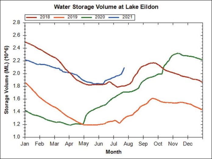 Eildon is still only at 62.9% of capacity but is the highest it has been this time of the year for the last few years.