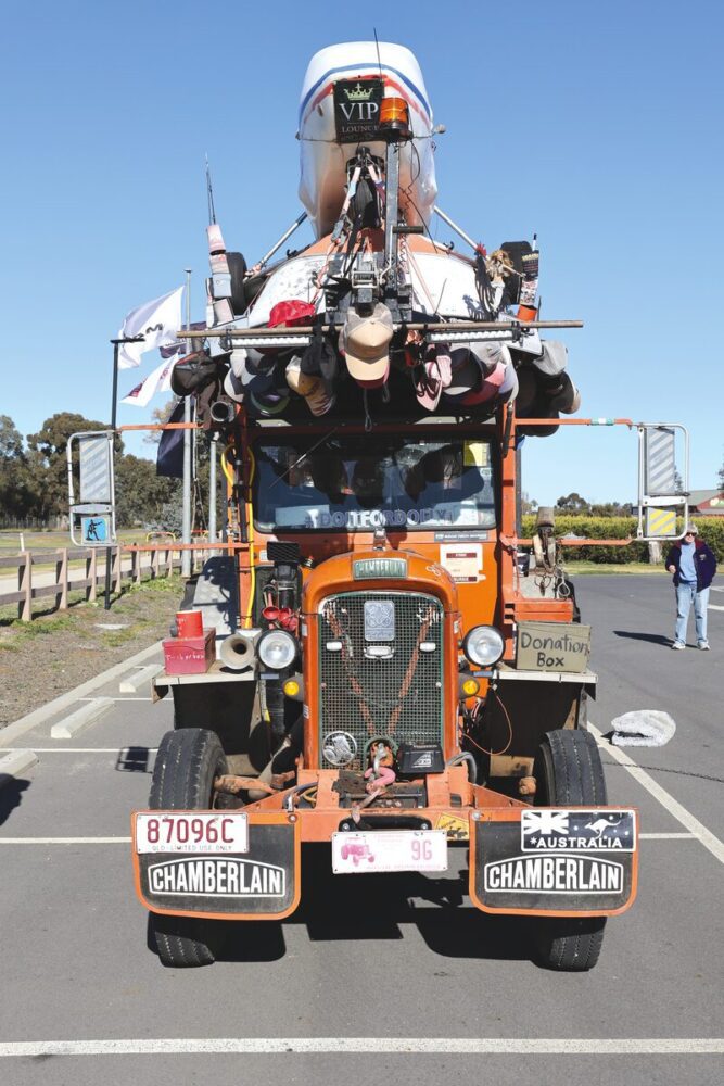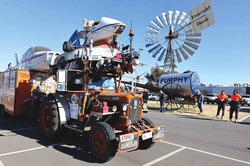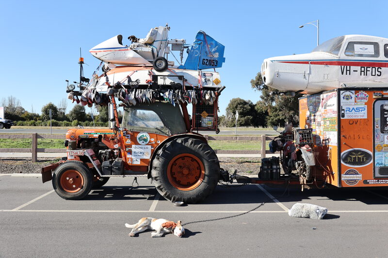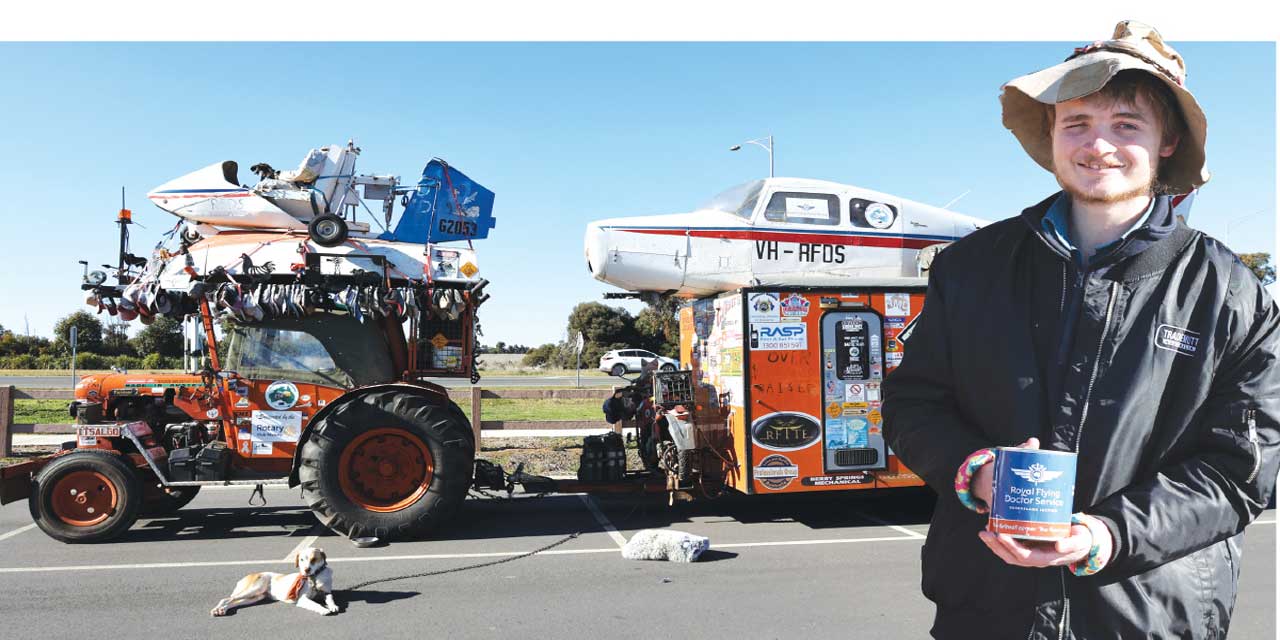 THERE was an air of excitement at the MOVE Museum last week as Sam Hughes, better known as the Travelling Jackaroo, made a stop in Shepparton. Accompanied by his faithful rescue dog, Bitsa, 21-year-old Sam has been journeying across Australia since 2021, travelling in an unmistakable 1960 Chamberlain 9G tractor named Slim. This tractor is far from ordinary; it’s adorned with all manner of Australiana, including trucker caps, a small plane, gyrocopter, and even a boat.