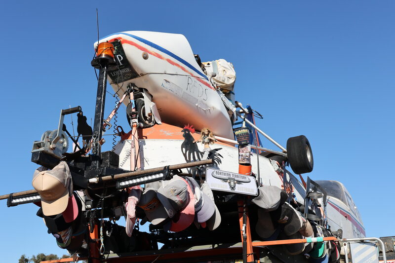 After experiencing mechanical issues travelling from Seymour to Shepparton, Aerodrome Automotive and Shepparton Carby generously offered a helping hand to get him back on the road. The MOVE Museum also allowed Sam to camp out while he was in town, and the Furphy Museum within MOVE has donated an iconic Furphy water cart lid to Sam’s forthcoming auction.