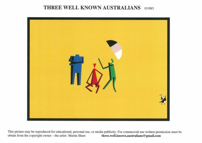 Sydney Artist Martin Shaw’s famous work, Three Well-Known Australians has kept Australians guessing for over 40 years, and locals now have their chance to join the fun as art is on currently show at the Shepparton Library until Tuesday, June 17.