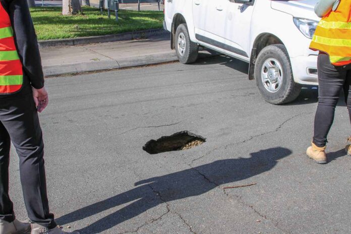 IF you are travelling north along Marungi Street after exiting the Fryers Street extension please note you will NOT be able to turn right at the roundabout with Nixon Street due to a large sinkhole opening up in the road.