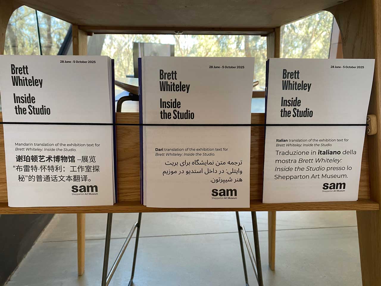 Latest News Translating art August 13, 2025 FacebookXLinkedinWhatsAppEmail SAM has introduced translated exhibition texts in Mandarin, Dari and Italian, with Arabic and Punjabi coming soon. The aim is to build a more inclusive experience for our vast and growing multicultural community. Photo: Natasha Fujimoto