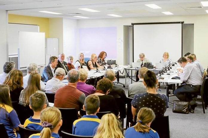 PARLIAMENT COMES TO MOOROOPNA… Members of the public and local councils address the parliamentary committee on what they are doing on climate change. Photo: Steve Hutcheson