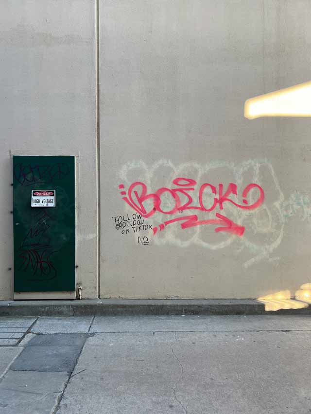 Graffiti is a criminal offence. Marking publicly visible graffiti, or offensive graffiti, is punishable by up to two years in prison and a maximum fine of $43,618.