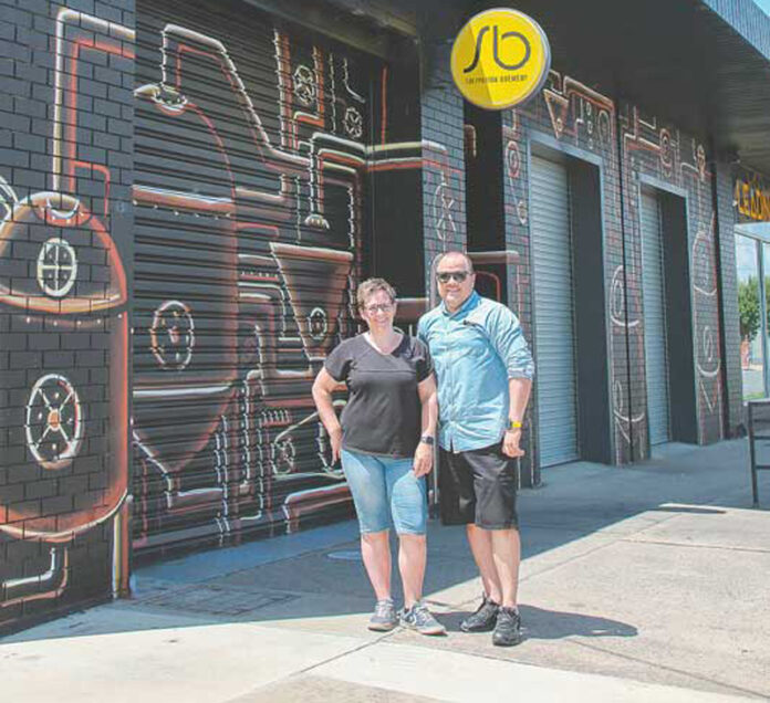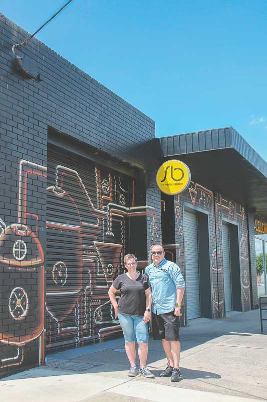 TALKING S#!T whilst DRINKING BEER FOR A GREAT CAUSE… Shepparton Brewery owner Daina Winch with Chas Cole area manager Will Lastarria. Photo: Kelly Lucas