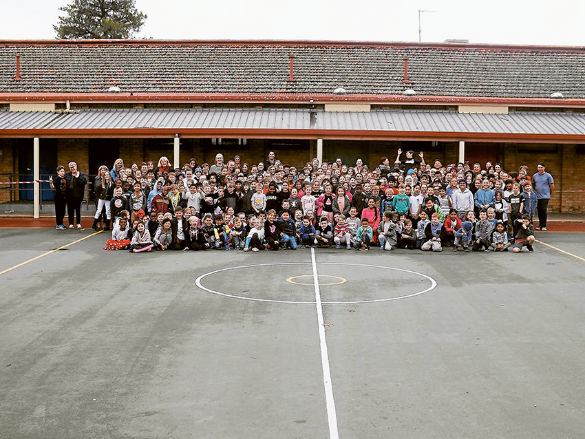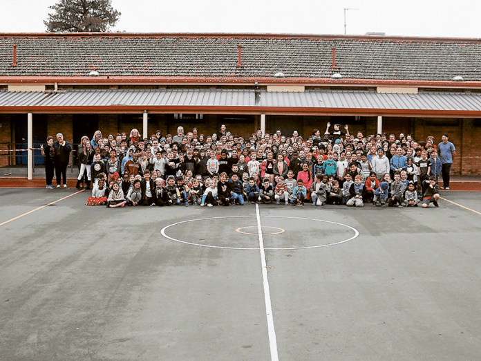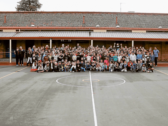 On the last school day of term two, current students and staff of St. Mel’s Primary School were pictured in front of the old ‘senior’ building prior to it being demolished over the school holidays.